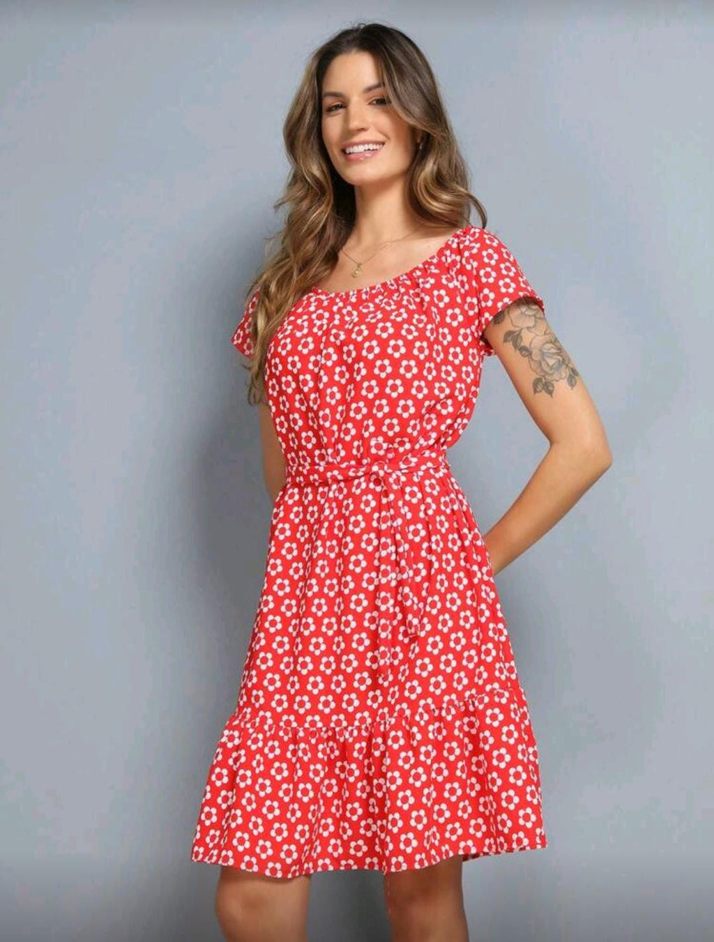 ⭐ Vestido Feminino Ombro a Ombro Estampado – Charme, Leveza & Estilo!